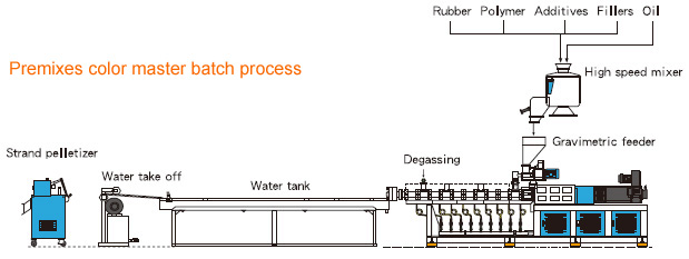 Functional master batch、 high concentrate master batch、white & black master batch、filling & modified、blending & modified、glass fiber & carbon fiber reinforcement、reactive extrusion、polymerization、homogenization。 |
